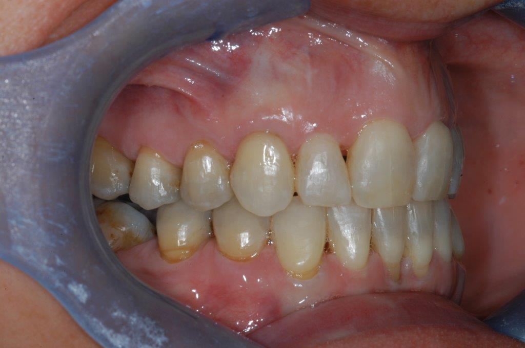 This mouth had recession on just one tooth with very little bone to support the tooth. The area needed support and thickness. The tissue was placed and the area now has thicker tissue to withstand the forces that the patient needs to place on it.